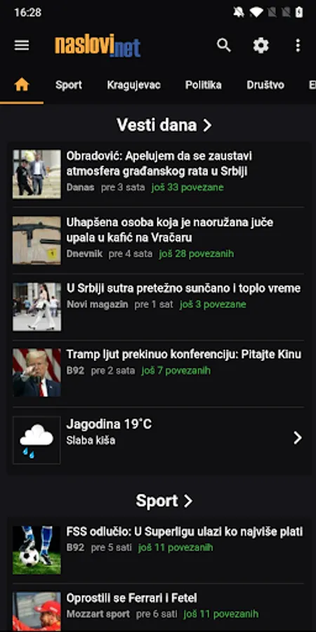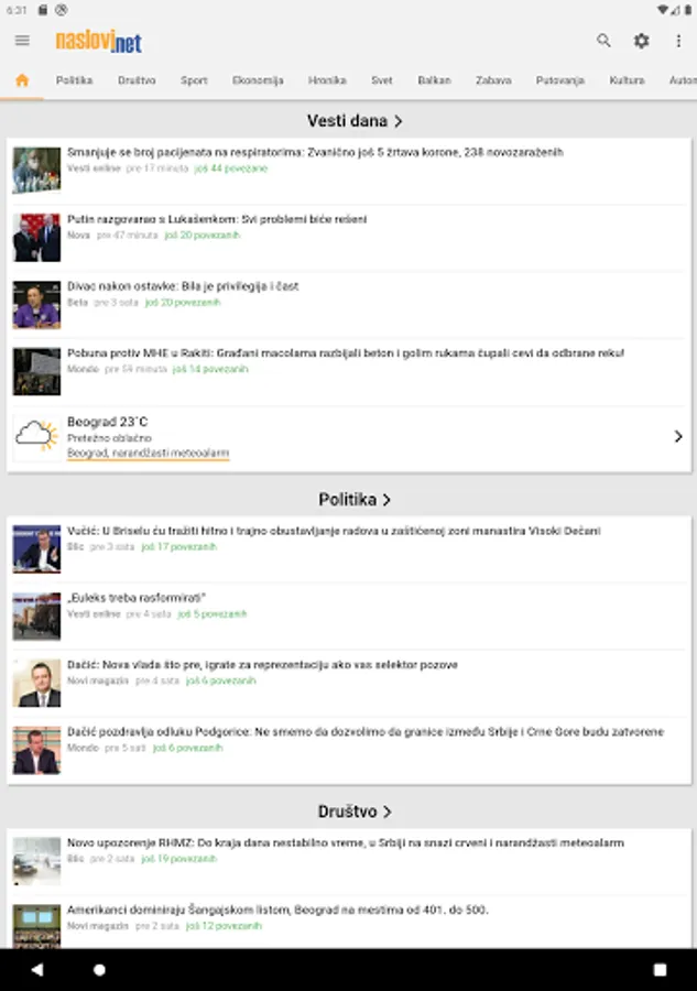 Naslovi.net offers its readers a quick overview of news and headlines from a large number of information portals in Serbia. Among others, the index includes news from B92 Blic, Courier, N1, RTS, BBC, Vecernje Novosti and others.