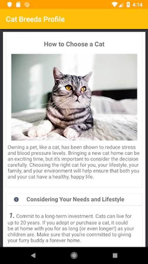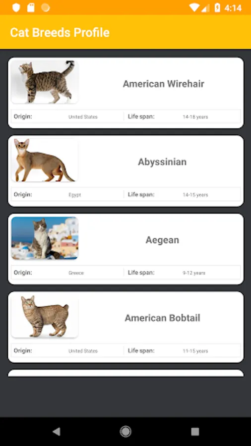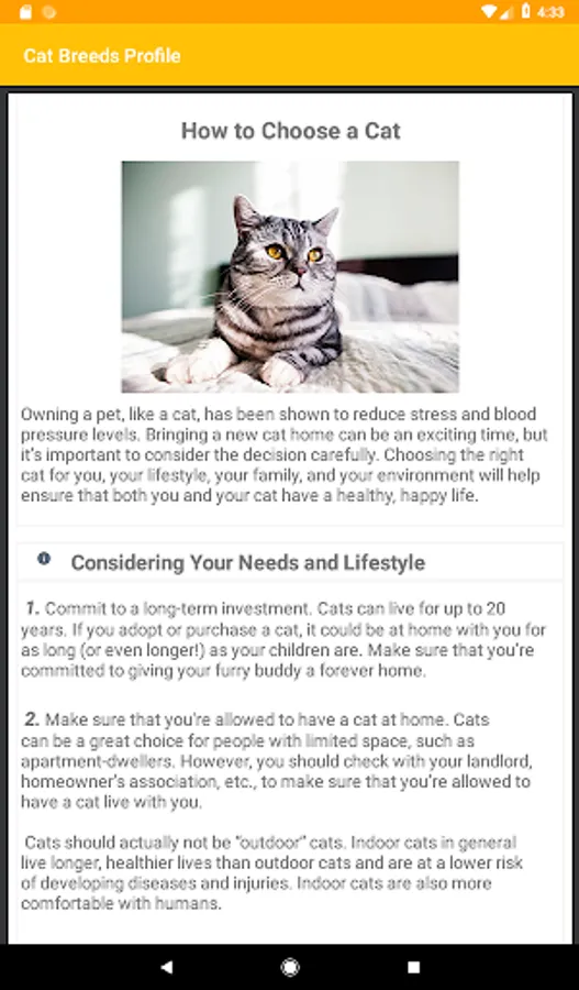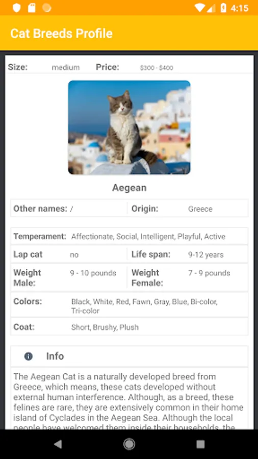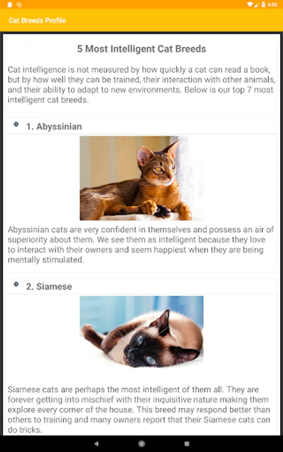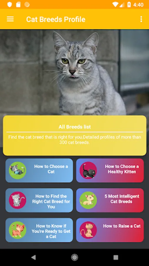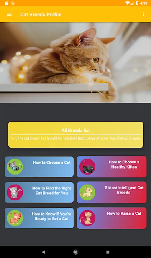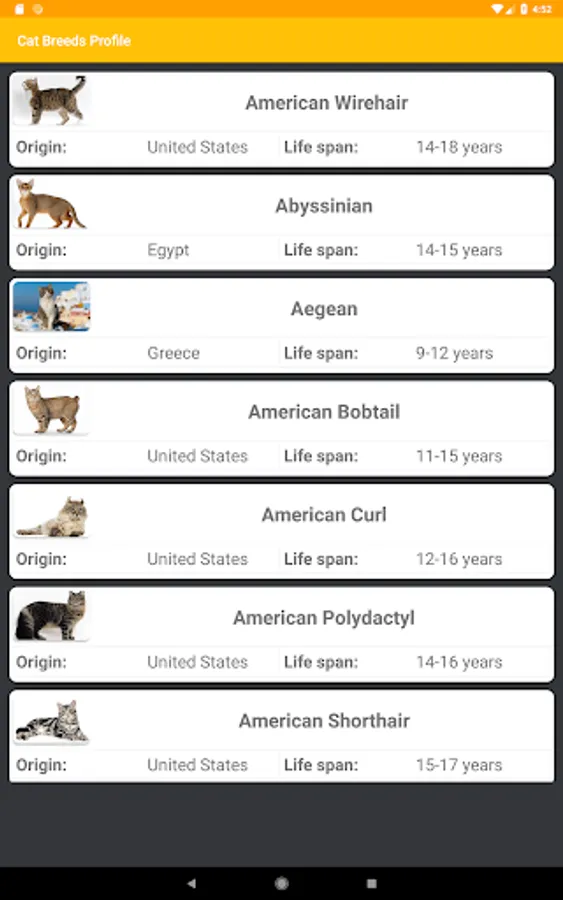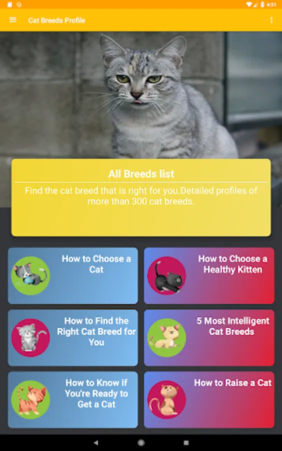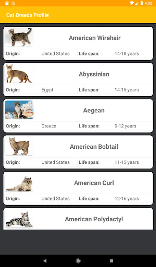 ★ In the Cat Breeds Profile application, you can find interesting facts about your feline friends: