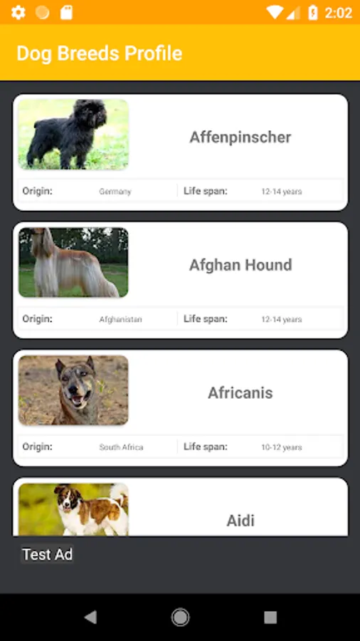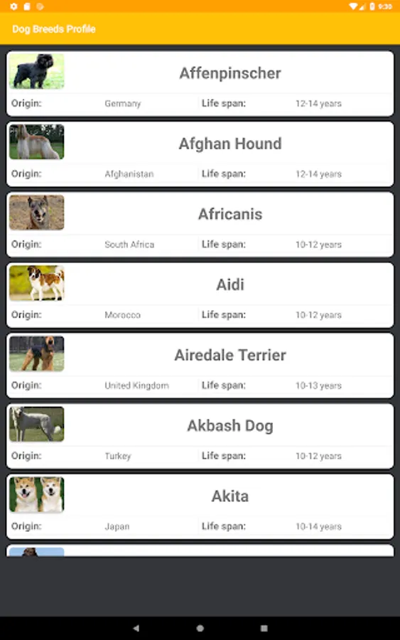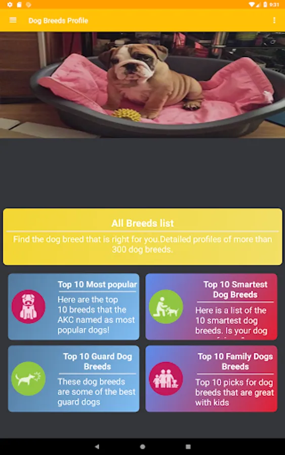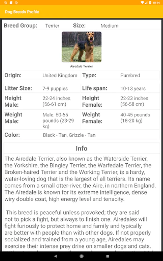 Dog Breeds Profile app contains more than 350 breeds of dog.