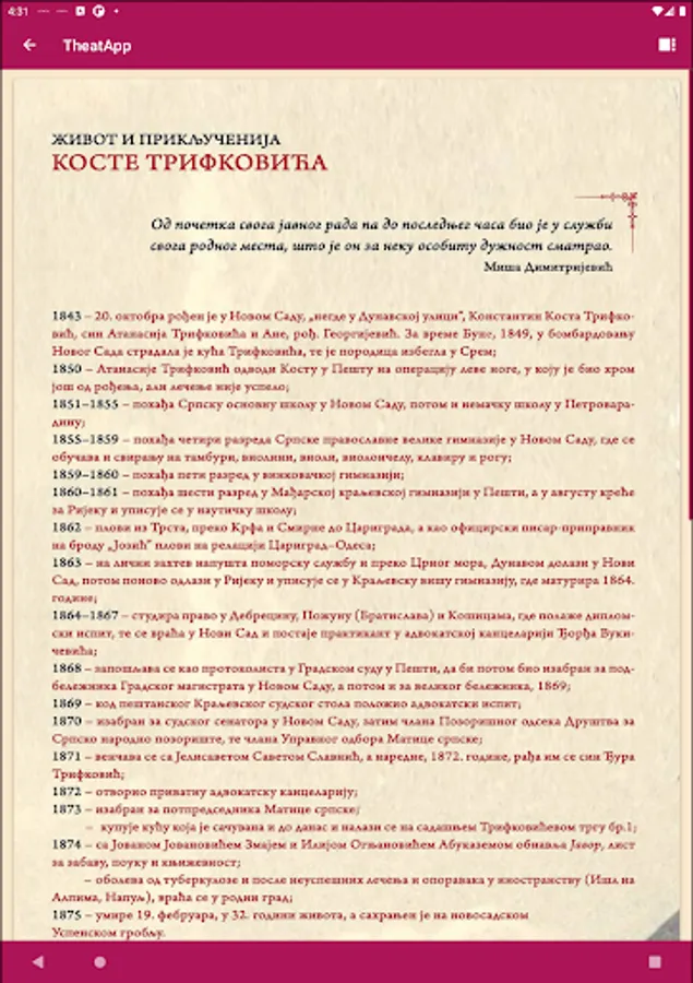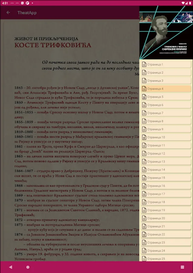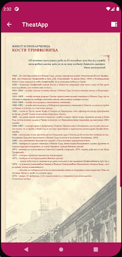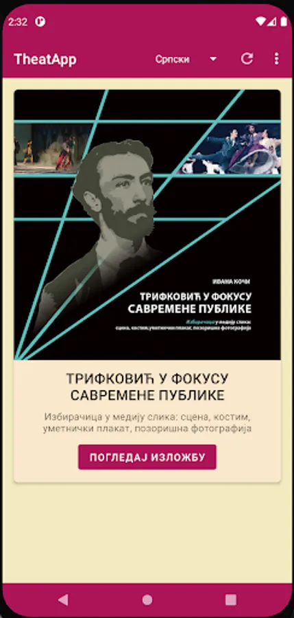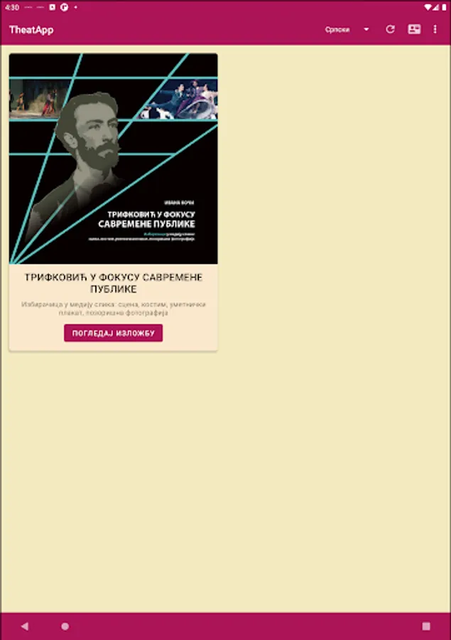 Theatapp - Application for digital online representation of exhibitions of the Theater Museum of Vojvodina, which deal with the study and presentation of the theatrical and overall cultural heritage of Vojvodina and Serbia.