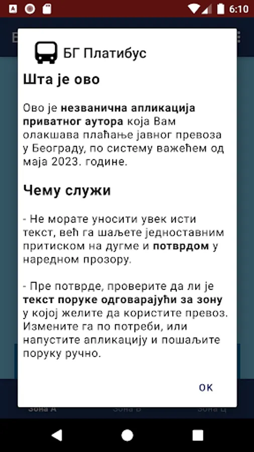 BG PlatiBus - unofficial application of a private author, for paying for city transport in Belgrade, according to the system valid from May 2023.