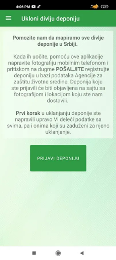 Report a wild dump and help remove it. Your move changes everything. Let's clean nature parks, forests, rivers, lakes, mountains and protected natural assets in Serbia from piles of waste. This waste causes air, water and soil pollution. Endangers health and the environment. It affects the quality of life and causes a downward trend in real estate values. Help us change that by painting, describing and mapping the illegal landfill.