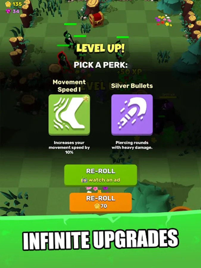 - COUNTLESS combinations of unique skills all designed to help you survive. Blast your way through different worlds facing relentless monsters and obstacles.