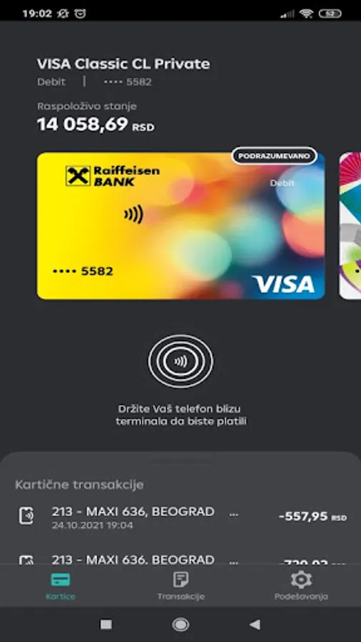 If you have several cards added to RaiPay, set one as the default card from which will be used automatically for all payments. If you want to make a payment from a card other than the default card, just open the application before the payment, choose a different card and then tap the phone to the terminal or reader.