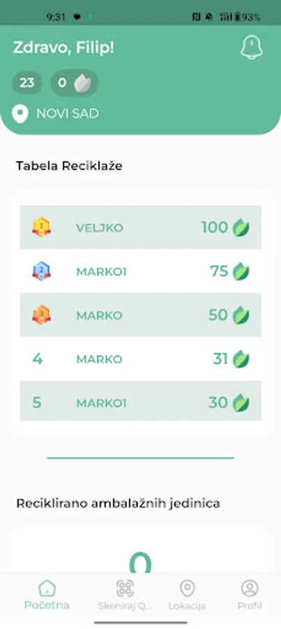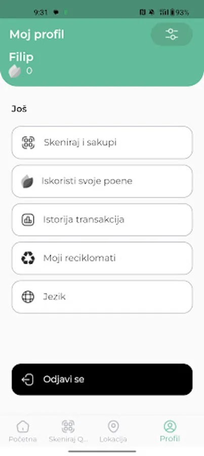 • Collect "Green Points" for each waste unit you bring to the Reciklomat machine by scanning the QR code from the app or simply by entering the mobile phone you registered in the app.