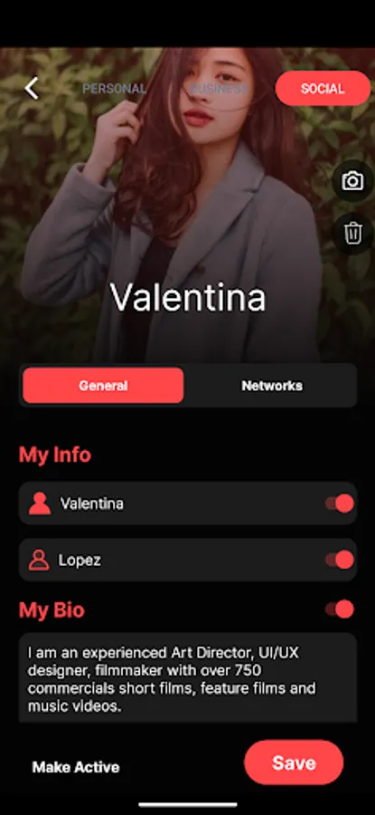 Customize your profile and share your card with anyone. In just a couple of steps, you can modify, create and customize your online experience. With the main purpose of making your profile truly yours.