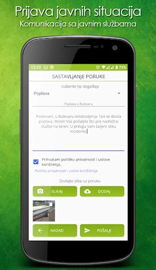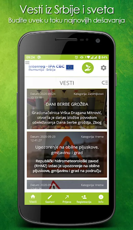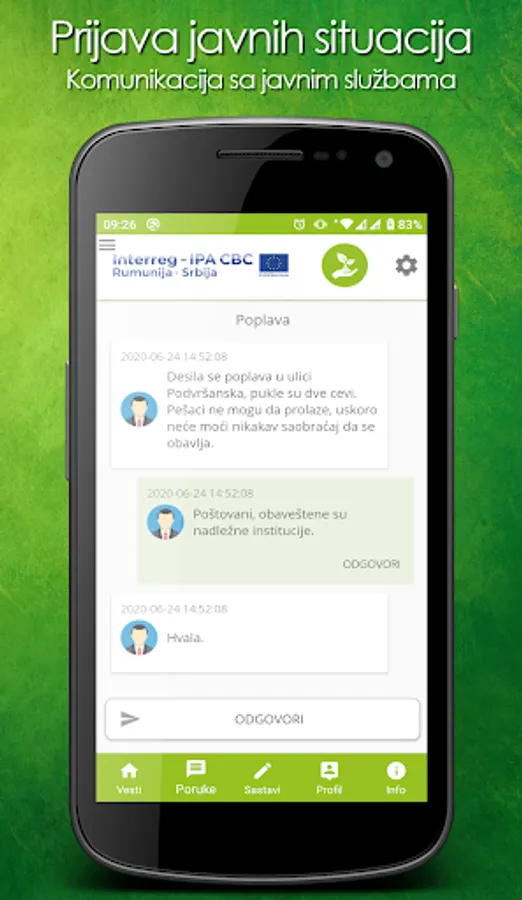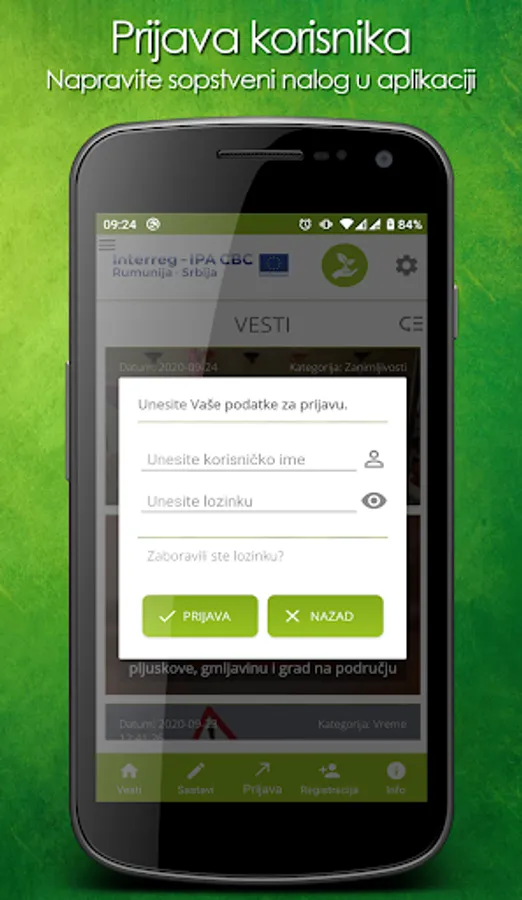 The main goal of the platform is to strengthen the operational and institutional capacity of local authorities in charge of emergency situations and disaster prevention, and thus the mitigation and prevention of environmental disasters and catastrophes by emergency reactions in target areas. The manner in which this is achieved is based on gathering information on important natural, environmental and social hazards and events in the target area, and informing and alerting citizens and relevant institutions.