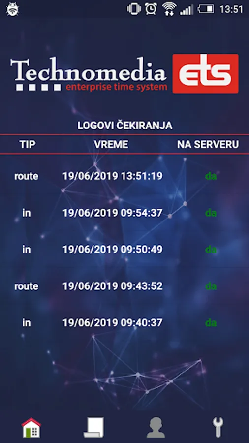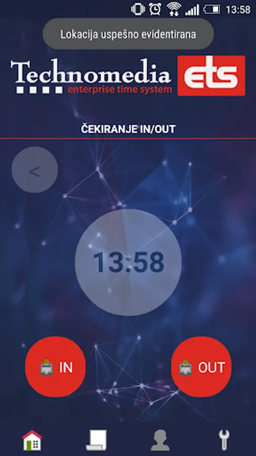 - Cheking in/out at the specific work location to record GPS location and time of employees' arrival.