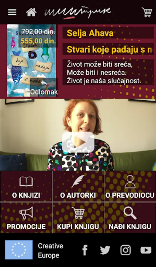 We live in a digital world. But that does not mean the end of literature. Reading changes shape. The way we learn about new books is changing. And we want reading and learning to continue, just as neither the story nor the testimony have any end. That's why we offer you the opportunity to meet us in the closest virtual environment. We give you a hand, pardon, an application through which you will be able to follow all the activities of Štrika. In a simple, fast and beautiful way, learn everything about our books: what it is about, read the paragraph, the display of the price, where is the nearest place where you can buy a book or order it right through the application; about authors and authors: biographies, interviews, roaming; about promotions, Štrik's festivals, Štrik's visits at fairs, about new projects. Become a part of Štrikov čitateljski klub and enjoy the discounts and actions we organize for you only, and be informed about everything by simple notification system. To read or not to be, click on it.