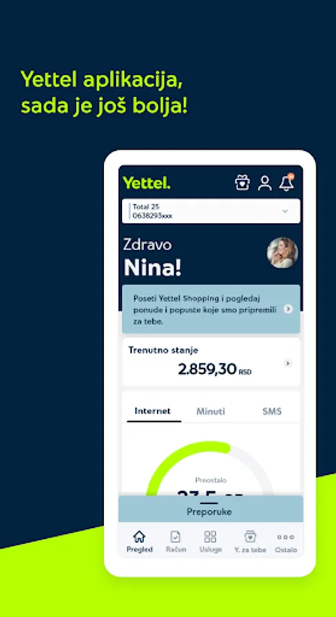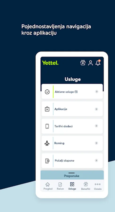 • Pristupi aplikacijama Yettel Shopping i Yettel Zelene staze