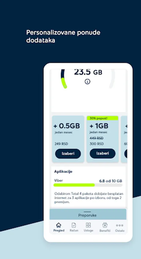 • Proveri stanje računa i potrošnje aktivnih usluga i dodataka
