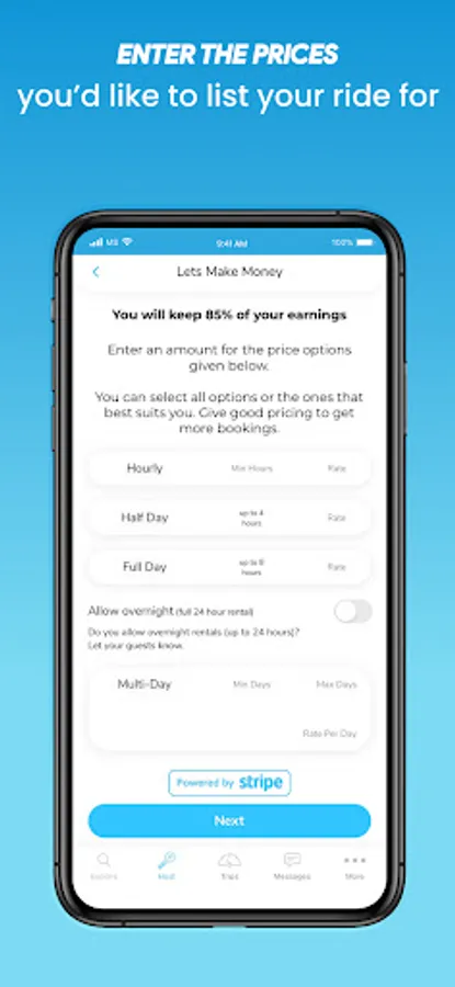 Share your ride without any charges or monthly fees. Full flexibility with extras, advance features, availability and more. Set your pricing, accept booking and