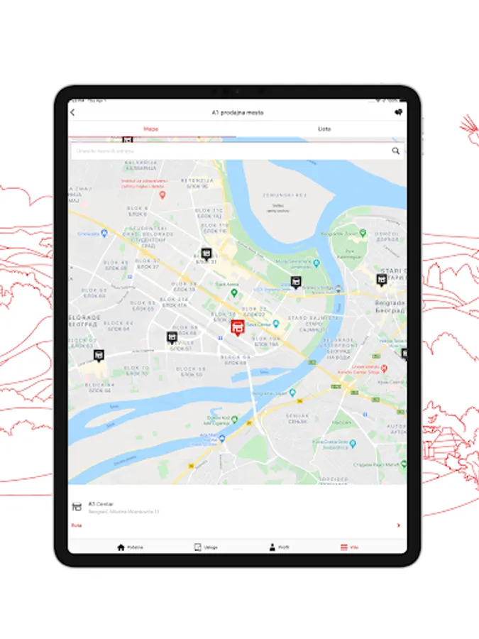 In Moj A1, easily find the nearest A1 location on the map and visit us at one of the A1 outlets throughout Serbia.