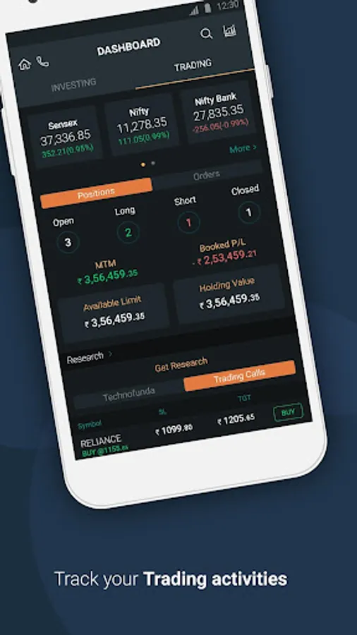 • Trading Dashboard to keep track of your orders, positions, available funds