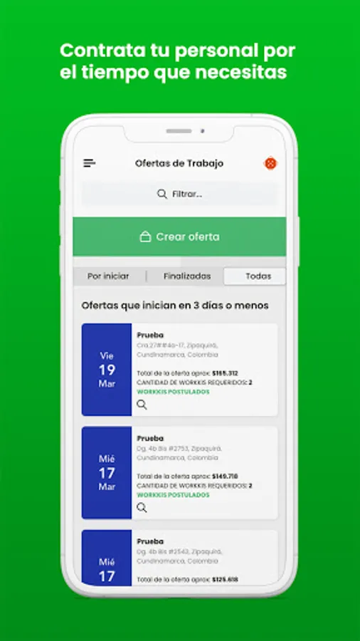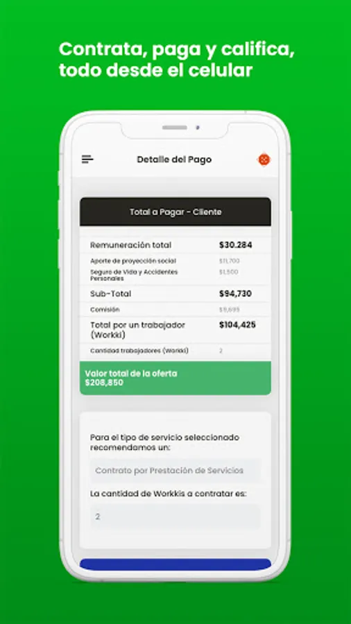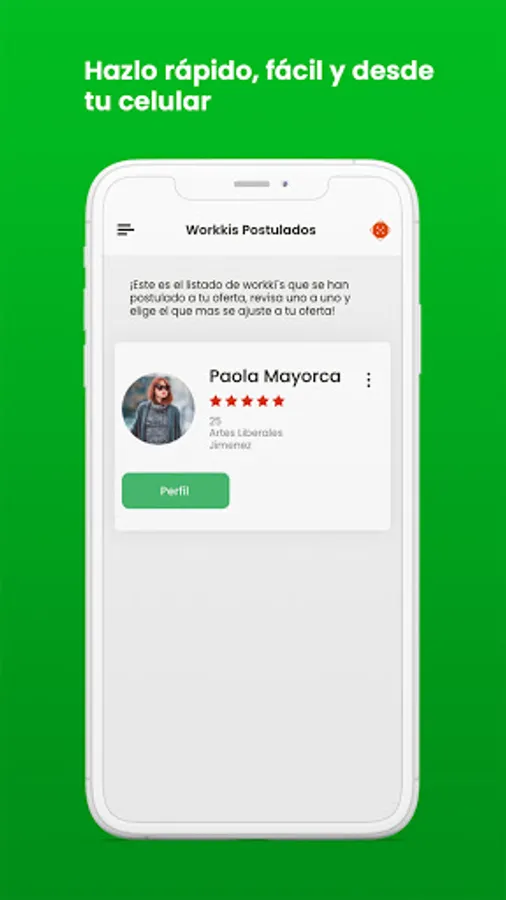 Workki is a technological platform that allows our clients to connect with people who have previously registered and who have undergone a validation process, our algorithm executes the “match” process to find the ideal connection! We accompany both people and clients, in the process from beginning to end: Bid, Choose, Hire, Pay and Qualify, so that the work is executed satisfactorily. Everything at your fingertips, easy and uncomplicated.