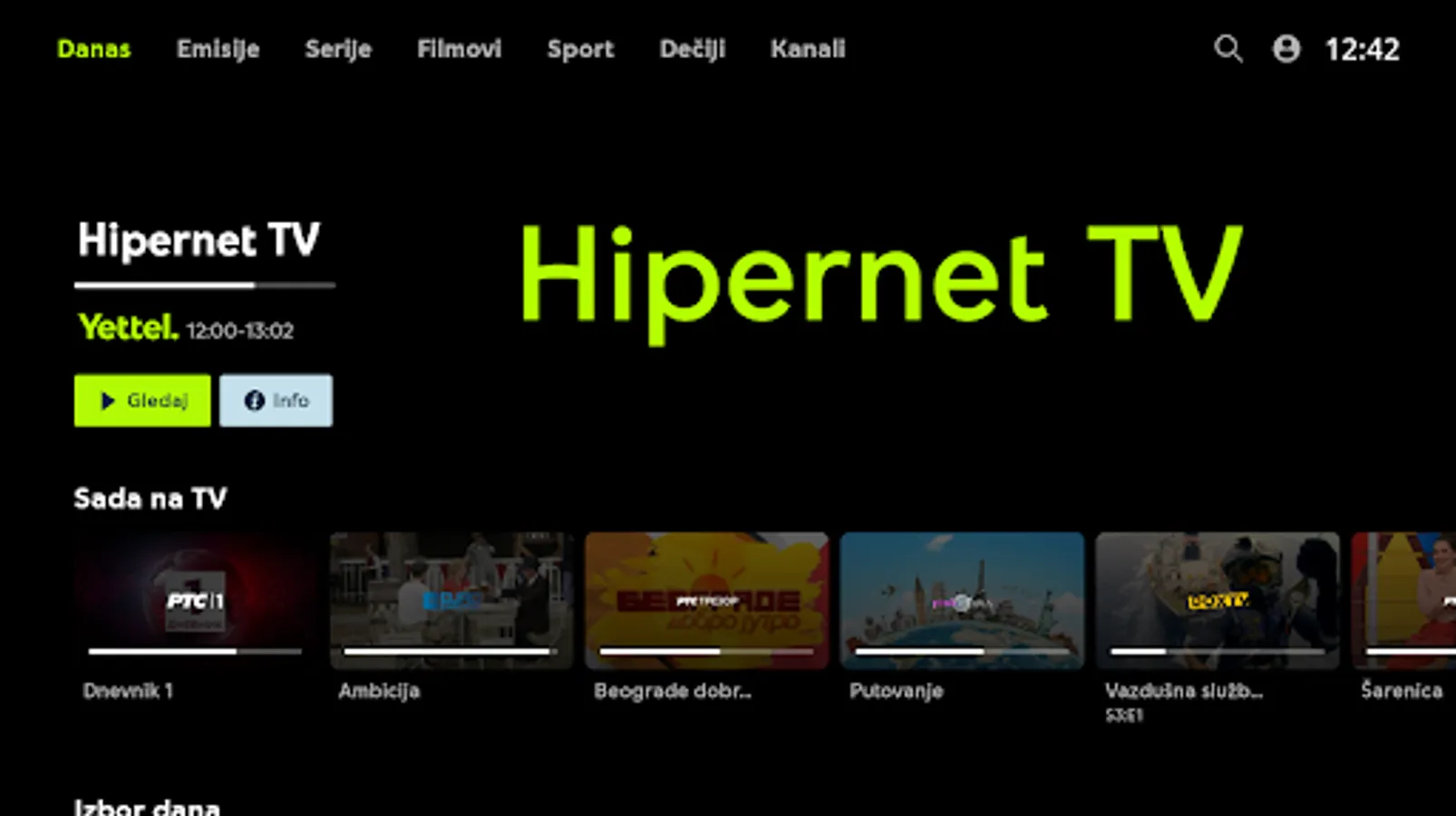 In the HIPERNET TV application you will enjoy your favorite movies, series, programs and sports competitions and events. All categories are divided by genres, sports, competitions, seasons and episodes, and children will be safe in the "Children's" section with content intended for the youngest.