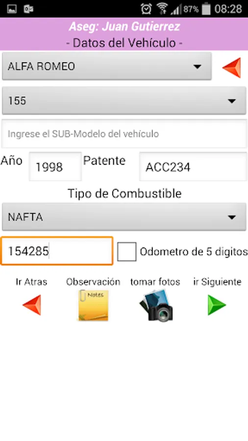 You. Must load basic data of the vehicle, taking pictures from the same application, and once completed, it will automatically be sent to our company, where he was routinely forwarded to your company.