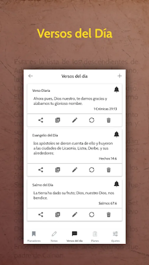 The following parameters stand out in favor of downloading our application: free reading without line (free offline), addition of practical bookmarks, daily verses with notifications, convenient and free study plans with customizable notification function, choice of theme and size lyrics and much more...