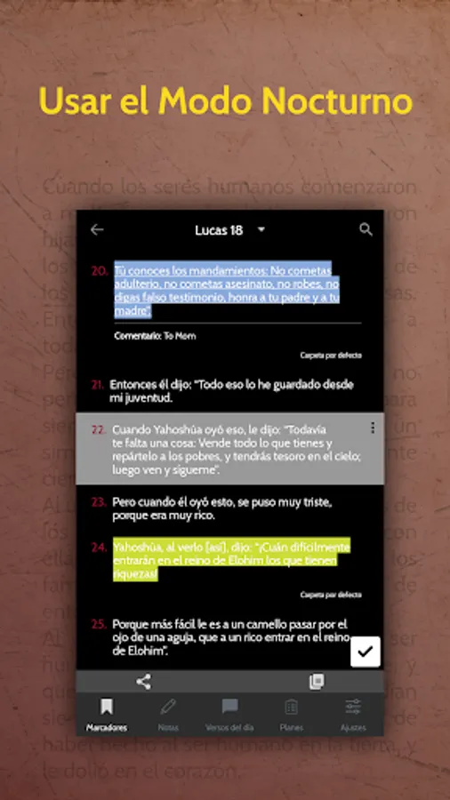 The following parameters stand out in favor of downloading our application: free offline reading, addition of practical bookmarks, daily verses with notifications, free and convenient study plans with customizable notification function, choice of theme and font size and much more...