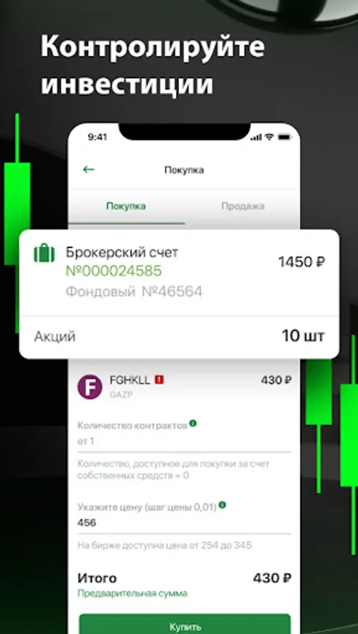 The RSHB-BROKER application has a simple and intuitive interface for ease of use by novice investors.