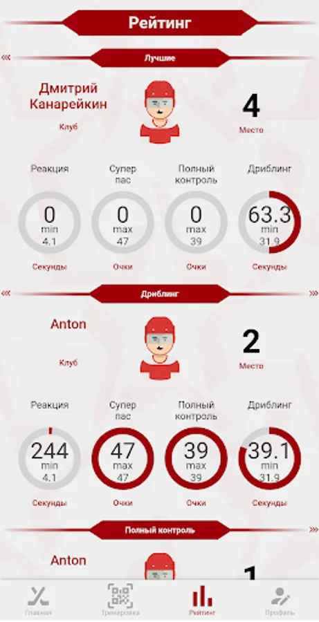 The internal rating system conducts an extended statistical comparison of the results and achievements of the user with other participants, displaying the level (rating) of the athlete in his personal profile. The use of an end-to-end comparison system is an additional competitive motivation to improve sports skills. For parents of young children, this opportunity allows you to control the success of their child's education. For seniors - an impartial assessment of skills already acquired. For professional hockey players - adding variety to the training process.