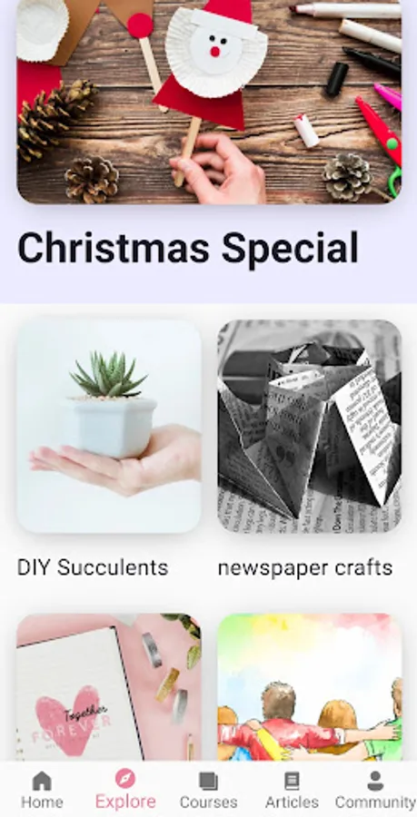 Paper crafts are an ideal choice for a gift. As an expression of creativity and a personal gift choice, scrapbooking is an amazing craft to look into. You can combine many styles of DIY art and paper craft techniques into creating a scrapbook. Check out our free lessons explained step by step on how to complete a scrapbook to perfection. From shopping for the right supplies to applying beautiful finishes, we will guide you step by step on being the best in the craft. Some other DIY art works in the app that you can look into are creating festive Christmas decorations. Imagine your own paper crafts hanging on the Christmas tree and brightening up the festival season for you. Let’s make ideas for Christmas cards and put our heads together for the cute paper decoration of flowers and animals that join the celebration.