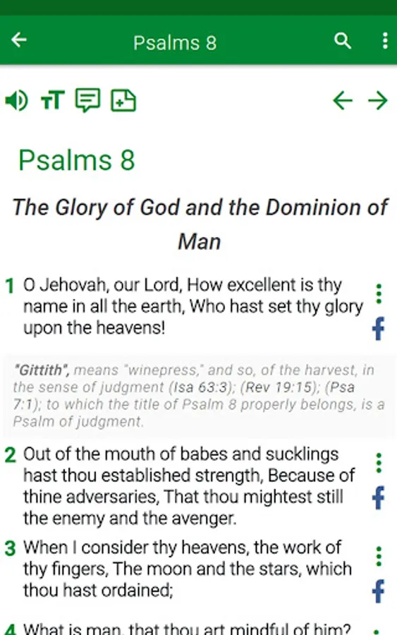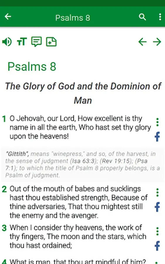 Click on the speaker icon at the bottom of the page to hear the verse or chapter you want and adjust audio settings (speed, volume, treble, bass, etc.)