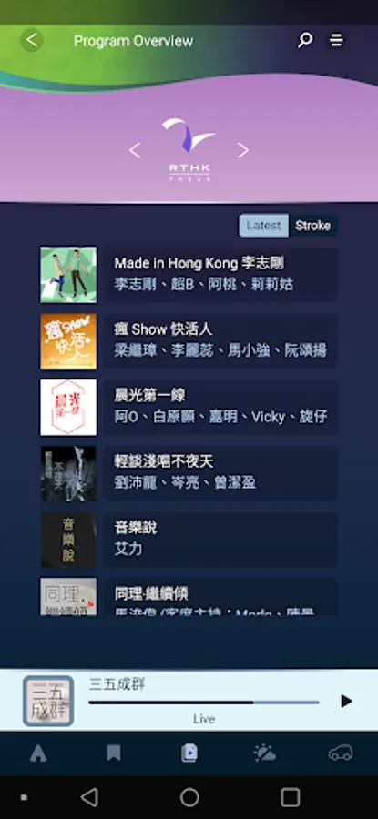 "RTHK Radio" is a radio mobile application produced by the New Media Unit of RTHK. It provides live radio broadcasts, radio archive, video clips, weather forecast and traffic news online for free. Users can also customize their favourite playlist. With a Wi-Fi connection or mobile phone network, you can enjoy a personalized RTHK anytime, anywhere!