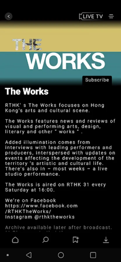6) Social Media: "RTHK TV" offers a sharing function for sharing your favourite RTHK TV programmes with your friends via social media.