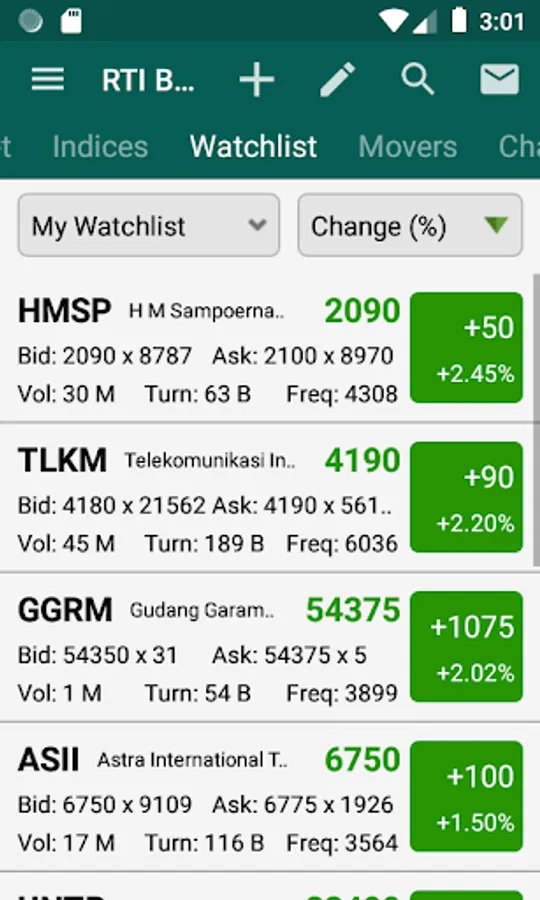 RTI Business brings you the Latest update from the Indonesia Stock Market consisting of Price Quotes, Charts, Financial Data, Analytics, Corporate Action, Key Statistic and News to your mobile devices.