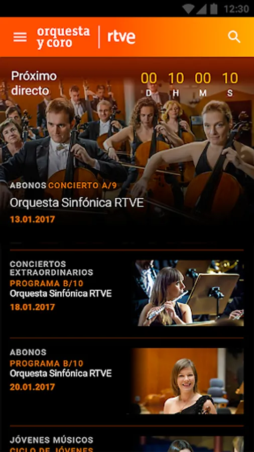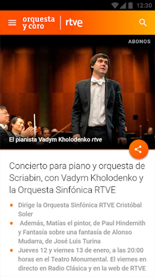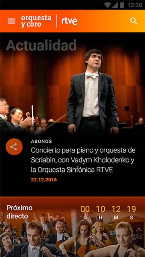Through the mobile application of the Symphony Orchestra and Chorus of RTVE (OSYC) you can enjoy all your multimedia content, news, programming, direct and ticket sales.