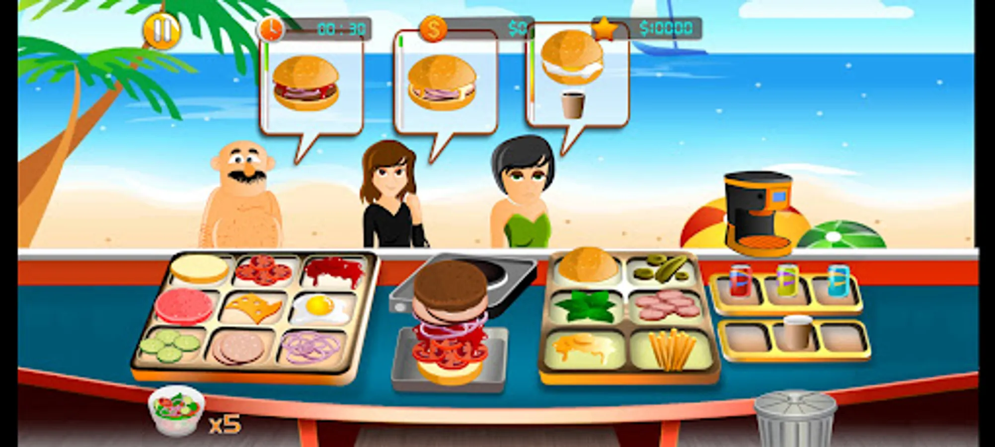 Have you dreamed of feeling like a fast food chef on the beach? Or just someone who likes to cook something? Then this game is for you.