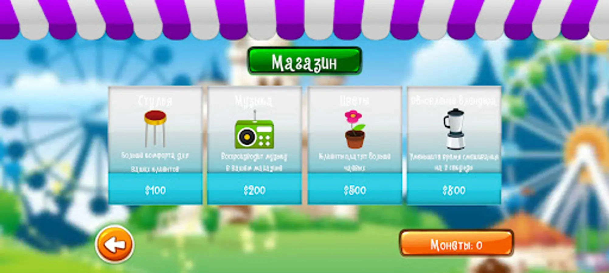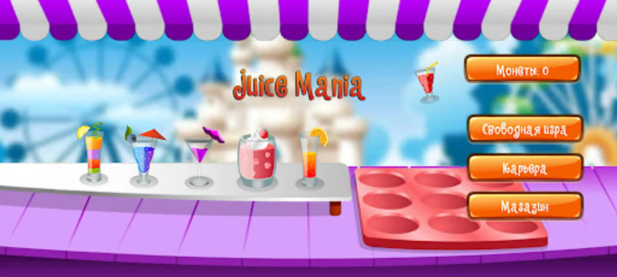 Have you ever dreamed of owning and operating a small fruit juice store? Do you like to treat your customers to delicious juices and smoothies? Do you want to create your own juice and smoothie shop, where you can invite new customers, add new juices, each with their own recipes? Well, the JuiceMania playset. In the park. - this is the game for you. Clients visit you and order fruit juices and smoothies, prepare them according to recipes and please your clients.