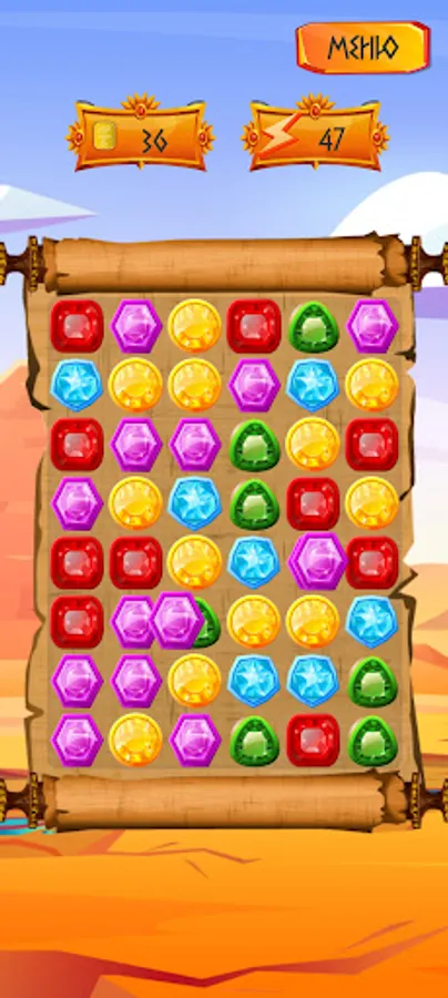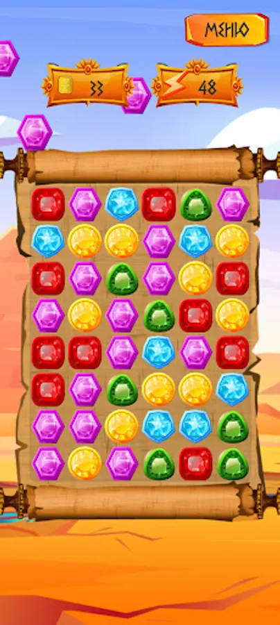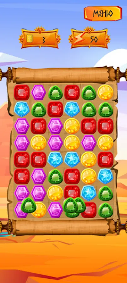 Treasures of Egypt is a match 3 puzzle game. Collect crystals and gems in a row, more than 3 pieces, and collect them. Your task is that you need to combine precious treasures in a row, collect them and earn coins. For coins, you can purchase moves of energy, which is expended with each move. Test yourself, go through all 20 exciting levels, each of which becomes more difficult than the previous one. Treasures of Egypt, a puzzle is an exciting entertainment and a warm-up of the mind. You have to go through each level to become the owner of treasures.