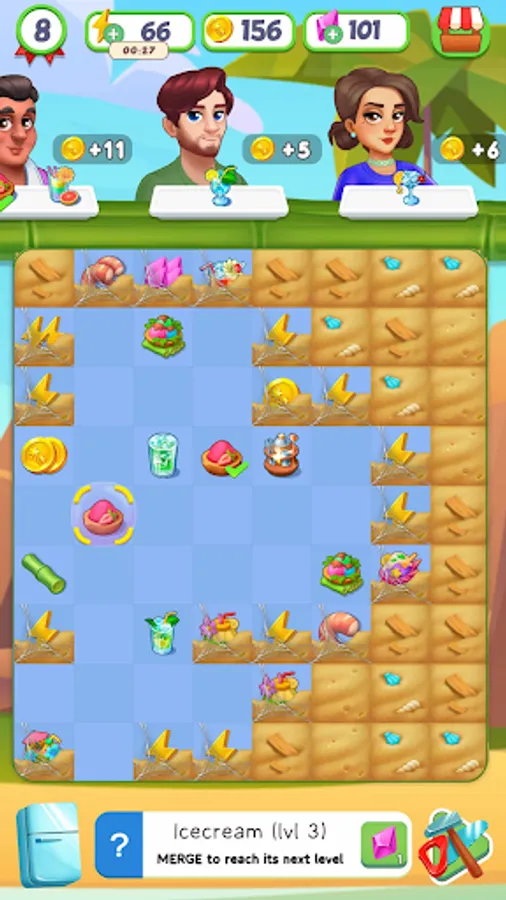 You will become the owner of a cozy cafe on a beautiful beach. Your task is to combine two identical items, creating new and unique cocktails. With each successful association, you will receive bonuses that will help you develop your cafe.