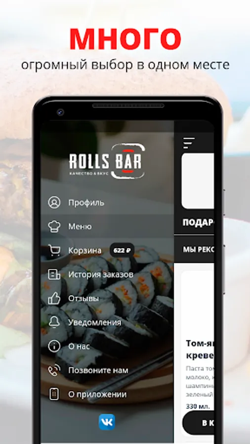 Professional chefs prepare only high-quality products, the delivery service will quickly and free of charge deliver delicious food to your home or office within an hour. Rolls-Bar is tasty, fast and affordable.
