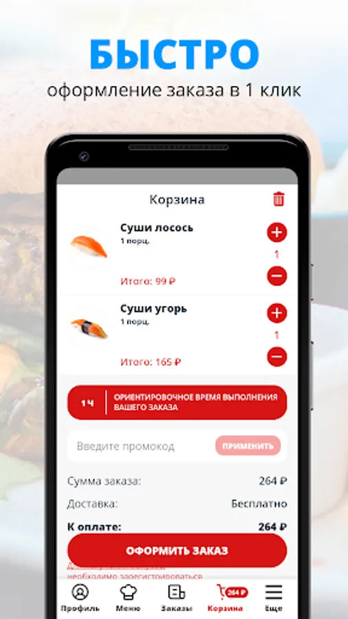 The SushiDay app is a convenient way to order food to your home or office! We prepare our dishes from high-quality fresh ingredients and deliver food across Adler quickly and carefully.