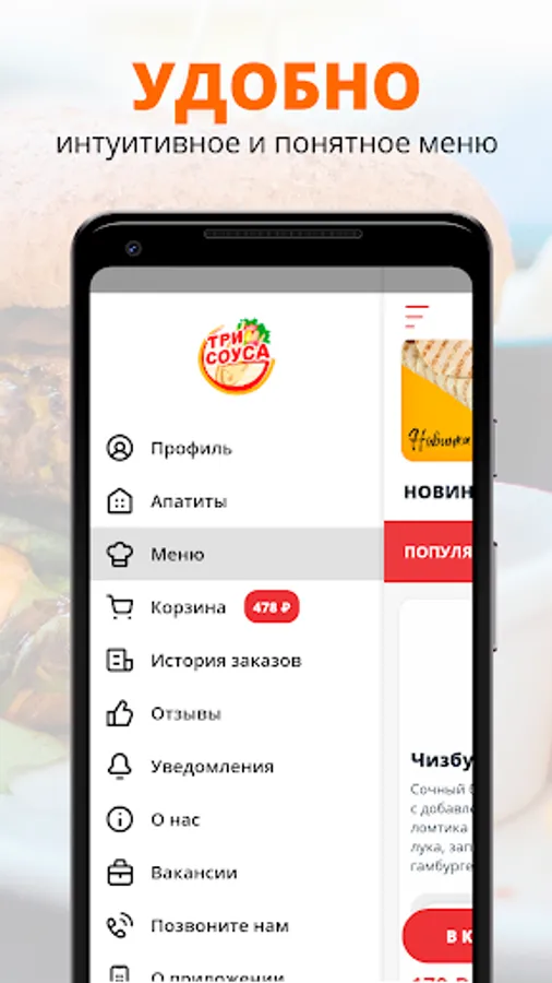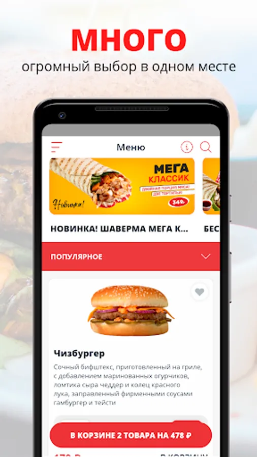 Install the application, choose your favorite dish from our menu and order ready-made food in just a few clicks!