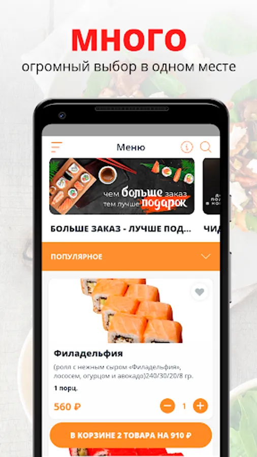 Hot rolls, sushi, gunkans, sets, salads, snacks, WOK, poke, soups and a children's menu are always on our menu.