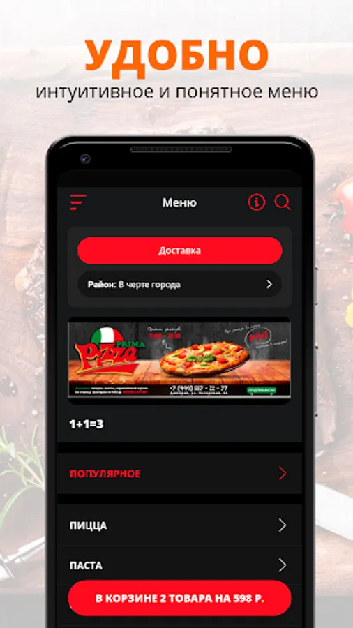 The Prima Pizza app is a convenient way to order food at home or in the office! We prepare our dishes from high-quality fresh ingredients and deliver food across Dmitrov quickly and carefully.