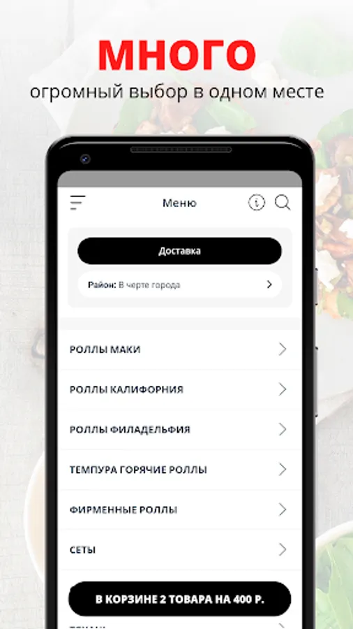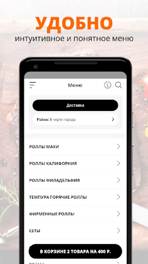 The application provides a choice of dishes from the menu, additions to the order, the number of persons / devices, pickup, pre-order, cash and online payment, as well as a system of discounts and bonuses!