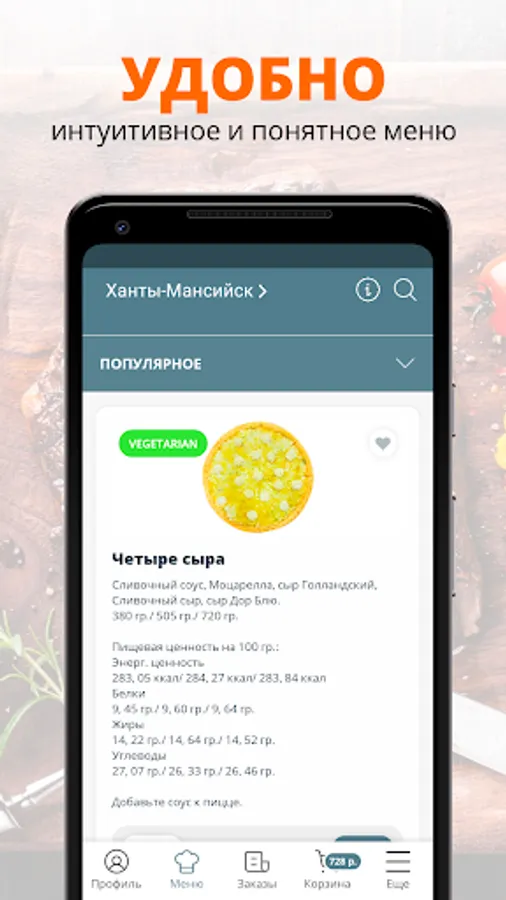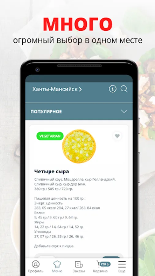 Fast delivery of hot and juicy pizza in Khanty-Mansiysk, Noyabrsk.