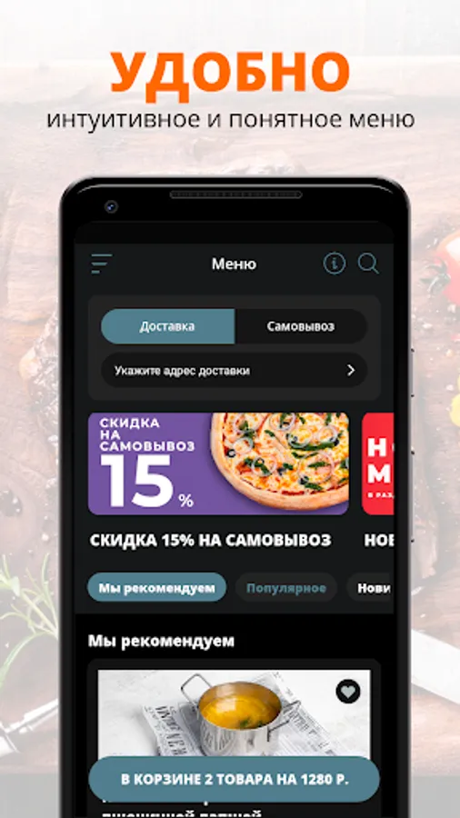 Use our application to quickly order ready-made food with delivery to your home or office!