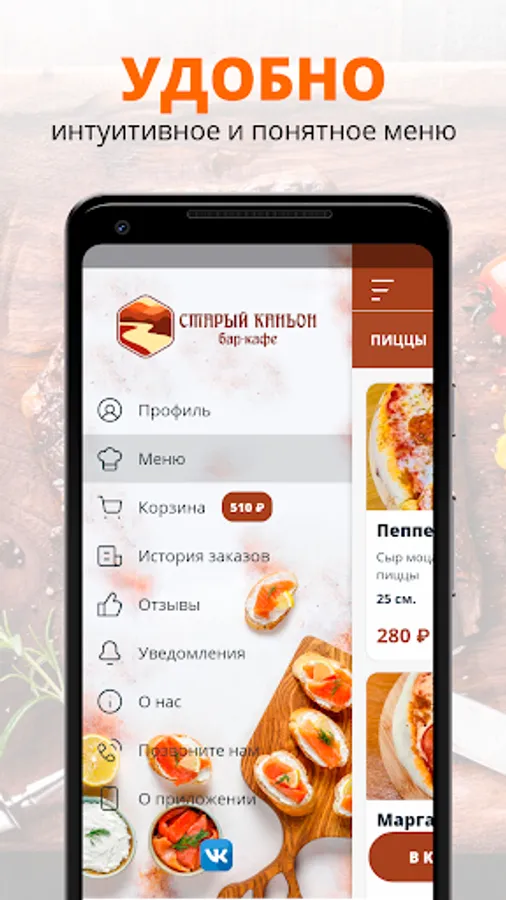 The Old Canyon app is a convenient way to order food to your home or office! We deliver our dishes across Kamensk-Uralsky quickly and carefully.