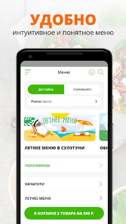 Install the app, choose your favorite dishes from our menu and place your order in just a few clicks! With the help of a mobile application, you can receive and accumulate bonuses, track the status of an order, choose a convenient payment method and stay up to date with all promotions and news!