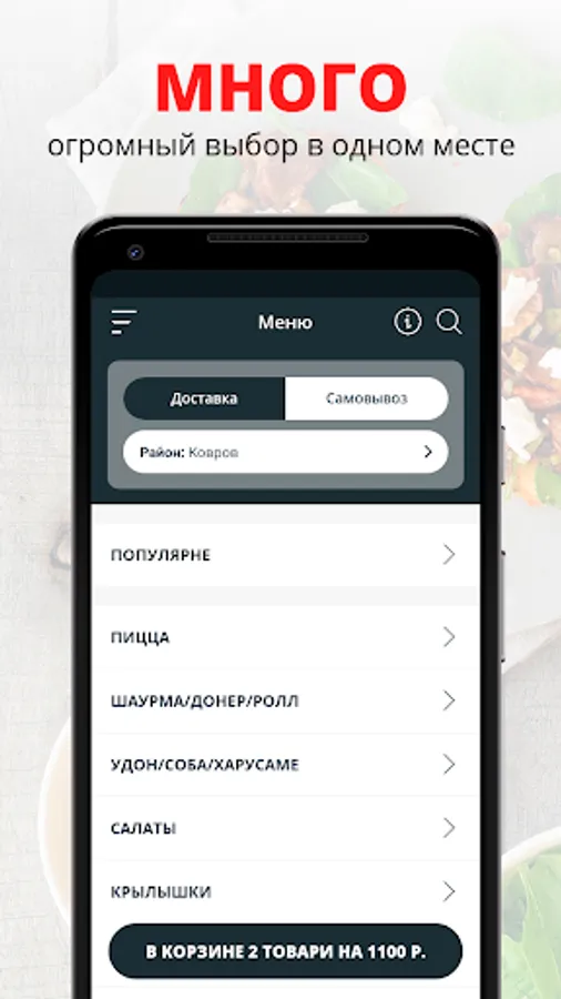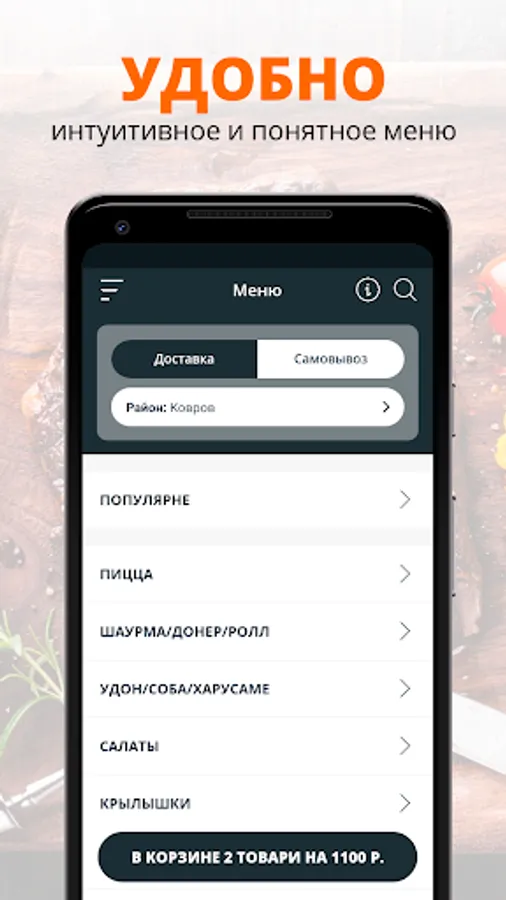 StreetFood is a delivery of shawarma, barbecue and other food in the city of Kovrov.