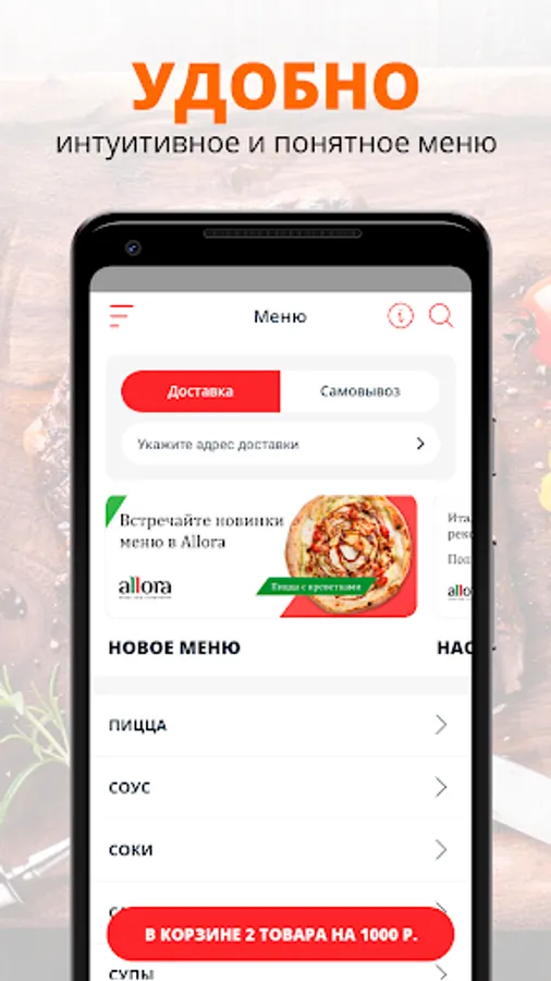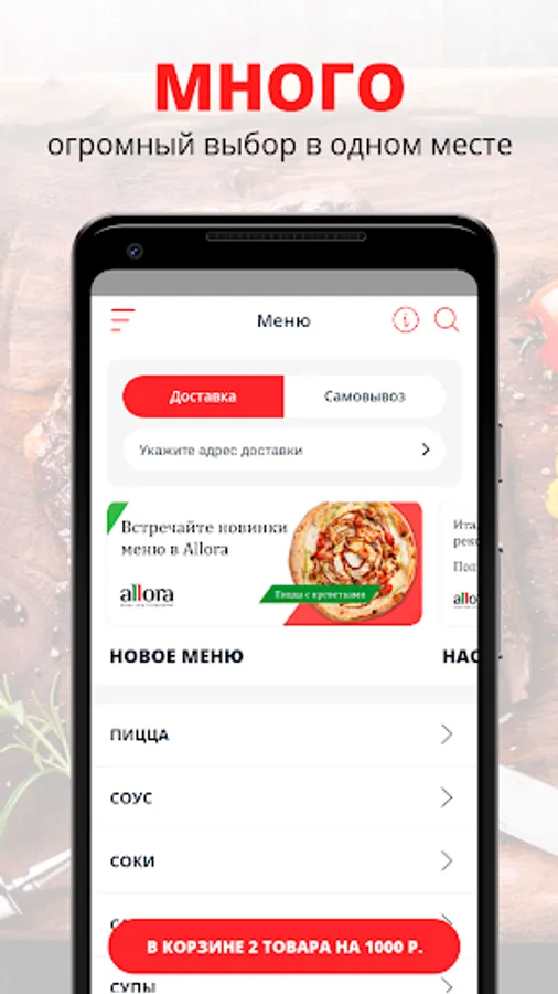 The Allora app is a convenient way to order food to your home or office. We prepare our dishes from selected products and deliver food in Krasnodar quickly and carefully.