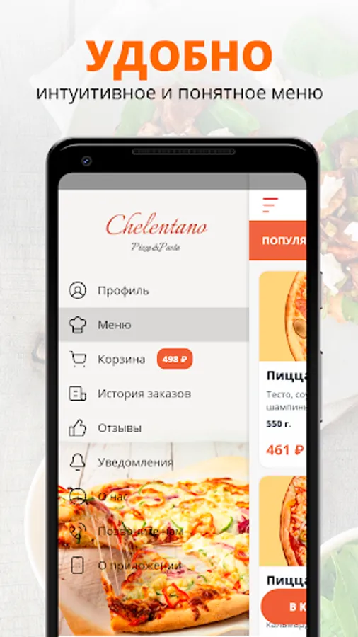 The Chelentano app is a convenient way to order food at home or in the office! We prepare our dishes from quality fresh ingredients and deliver food in Krasnoyarsk quickly and carefully.