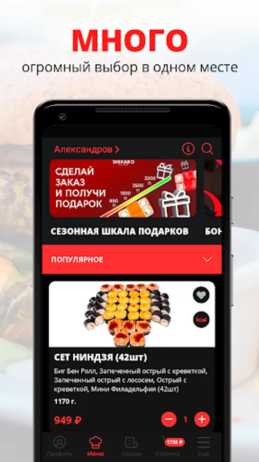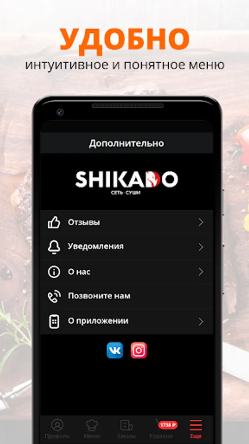 In the application, you can view our menu, place an order for delivery or pickup, store and view the history of orders, receive and save bonuses, learn about new promotions and special offers. Download our app and order food from SHIKADO.
