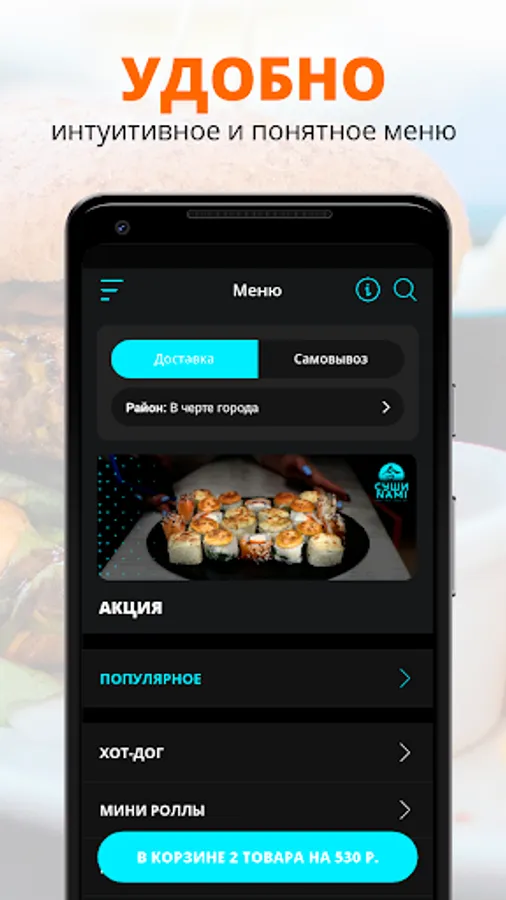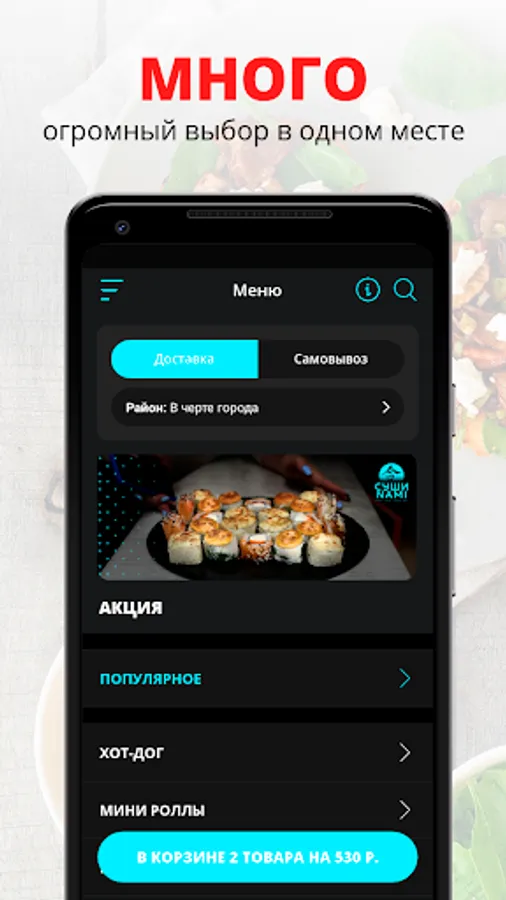 The Sushi nami app is a convenient way to order food to your home or office! We prepare our dishes from quality fresh ingredients and deliver food anywhere in Michurinsk!